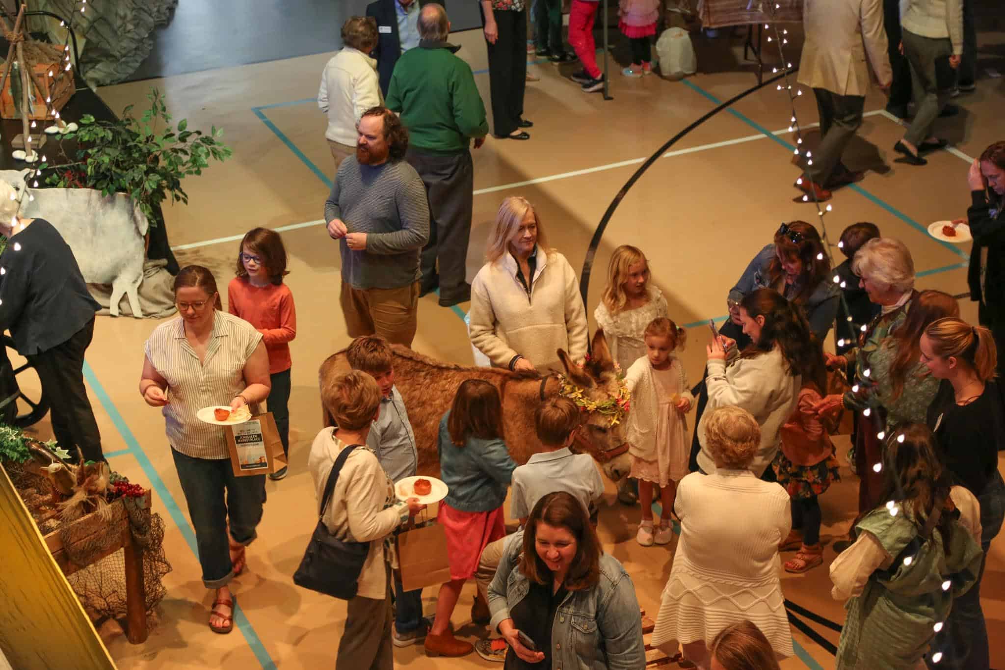 … to say that Palm Sunday was full of so many beautiful things: our donkey with his lovely flower head wreath; gorgeous, gorgeous music from our Children/Cherub Choirs, Praise Team, Sanctuary Choir, and Orchestra (amazing leadership from Craig Estep, Eon Malan, Joel Mullis, Ashleigh Broome, Dori Peterman, Shannon Hurleigh and Tina Fincher); a pastoral prayer for the ages by Rev. Linda Kelly; worship coordination from Jonnie Hildreth and Amy Ramsey; ASL Interpreter Julia Sain; fabulous ushers; warm-hearted greeters; fun and caring nursery workers and so much. Moreover, I could not even come close to naming all the intricacies of our Jerusalem Marketplace and the cast of volunteers to make this a Sunday beyond imagination. Thank you to Pastor Corey and all who made the other end of our campus (Gym and The Commons) so special. What a glorious Palm Sunday 2025!