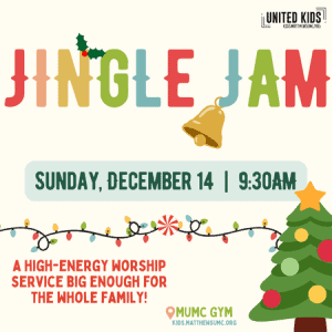 Jingle Jam Family Worship Sunday, Dec. 14 | 9:30AM | The Gym *Please Note: This is a special Family Worship Service* Join a High-Energy Christmas Celebration Family Worship. There will be lights, games, songs, and the Christmas story told in a way you have never seen before. Bring your whole family to be part of this adventure! Then, following the ...