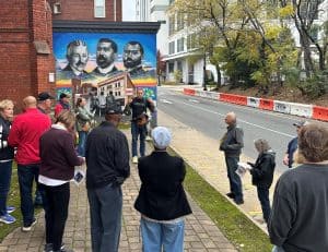 Did you know that the Bridge-Builders Fellowship Group recently took a walking tour of downtown Charlotte? They learned about Charlotte’s history with racism and the almost total obliteration of the Brooklyn Village community during the 1960’s era of Urban Renewal, and how effects of the past haunt us into today and our future. The tour was led by Greg Jarrell, author of Our Trespasses: White Churches and the Taking of American Neighborhoods.
